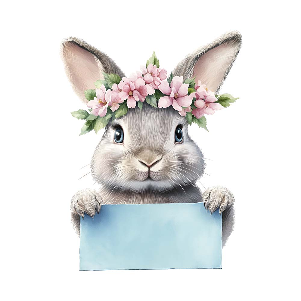 Bügelbild Ostern Hase mit Kranz und Wunschnamen möglich