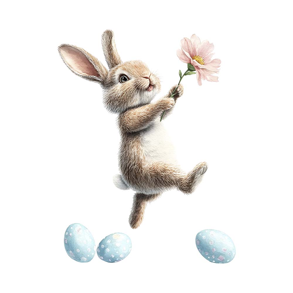 Bügelbild Ostern Hase mit Nelke und Ostereiern