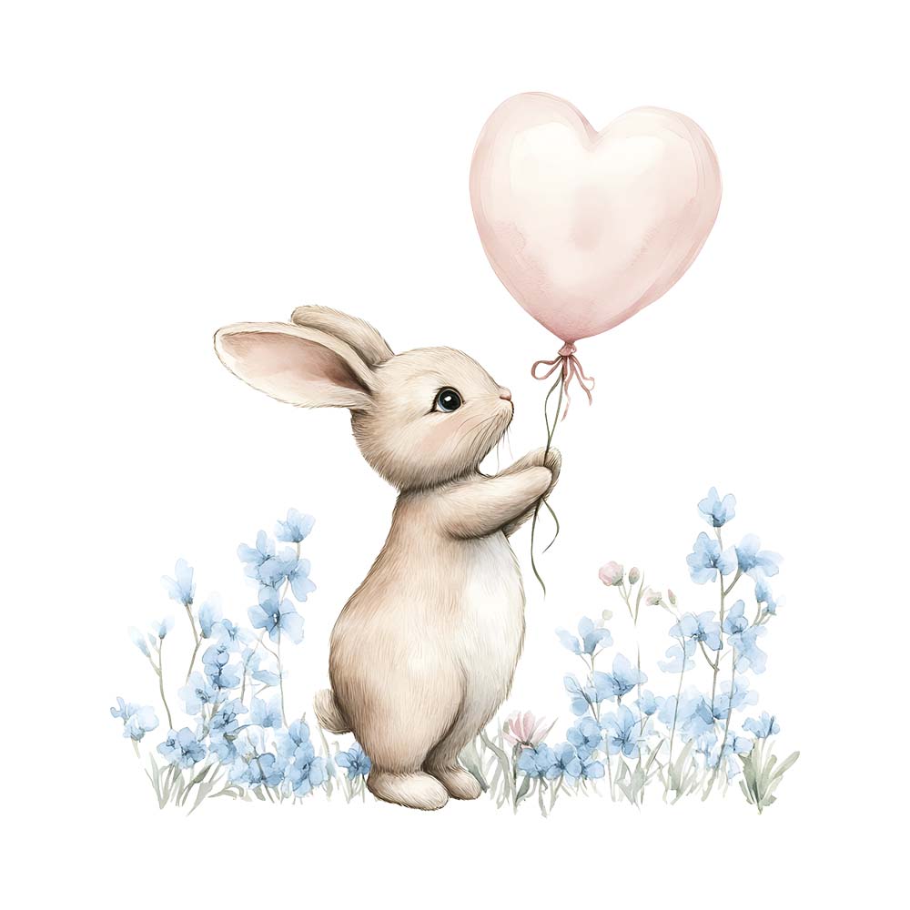 Bügelbild Ostern Hase mit Herzballon in pastell