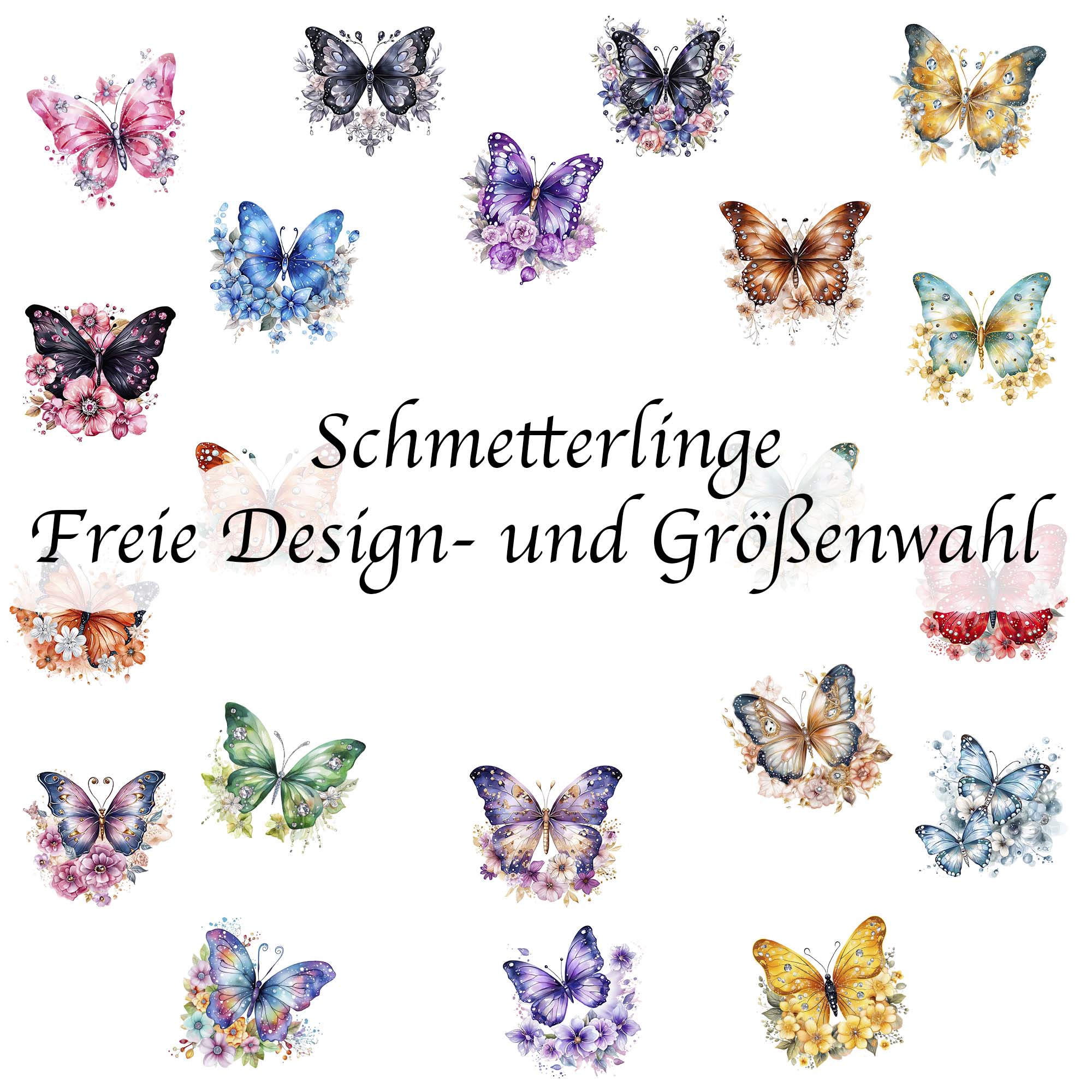 Bügelbild Schmetterling & Blüten - Freie Design- und Größenwahl
